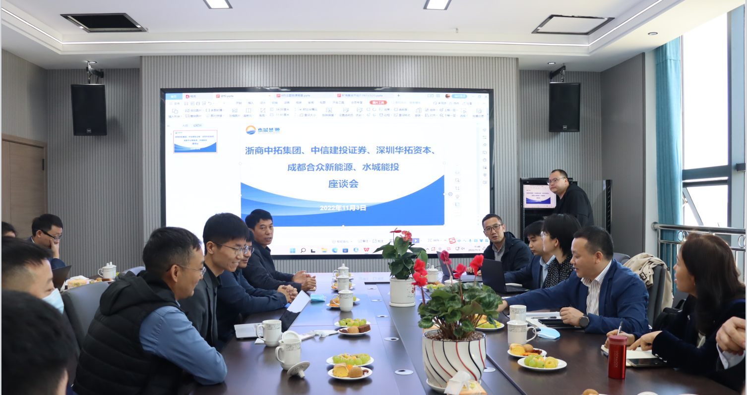 2022年11月3日,浙商中拓集團(tuán)股份有限公司、中信建設(shè)證券股份有限公司、深圳華拓資本投資管理有限公司、成都合眾有限公司、六盤水市水城區(qū)能投實(shí)業(yè)(集團(tuán))有限公司在水城能源大廈17樓會議室召開座談會。