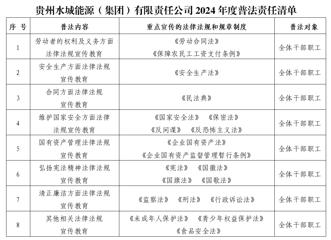 貴州水城能源(集團(tuán))有限責(zé)任公司2024年度普法責(zé)任清單